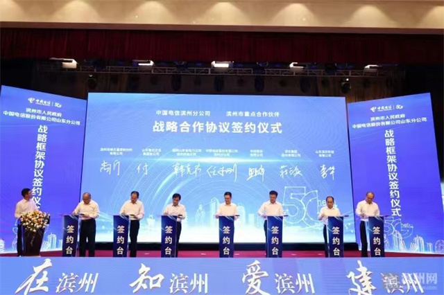 近日,濱州市人民政府與中國電信山東分公司戰(zhàn)略合作框架協(xié)議簽約儀式在濱州舉行。中國電信山東分公司黨委書記、總經(jīng)理文勇,市委副書記、市長李春田共同為“天翼云濱州資源池”揭牌。會上,中國電信濱州分公司黨委書記、總經(jīng)理任永剛與公司董事長盛守祥共同為“5G+智能紡織”項目揭牌。