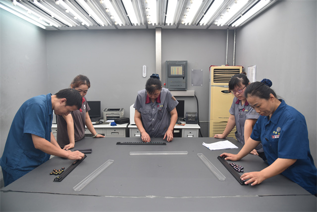 標準質量部牽頭組織各印染車間、實驗室對技術員、實驗員開展色棋評定,切實強化提升員工產(chǎn)品質量意識,提高顏色符合率,鼓勵廣大員工在日常生產(chǎn)中弘揚工匠精神,堅持質量第一,精益求精。