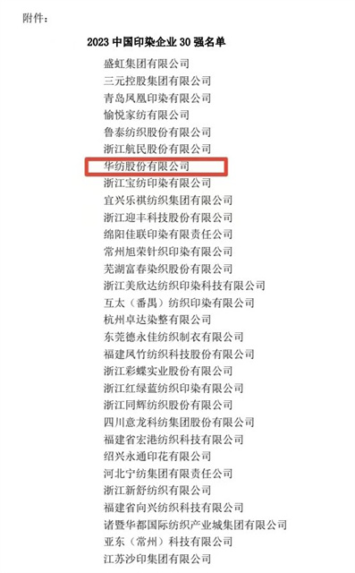 喜報(bào)!公司蟬聯(lián)2023年中國(guó)印染企業(yè)30強(qiáng)