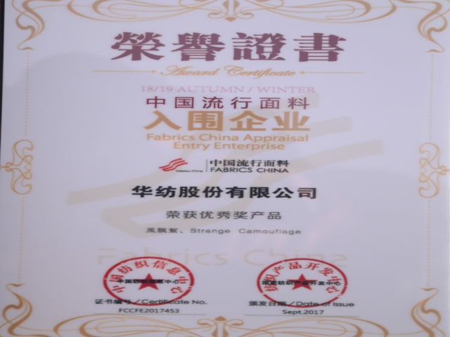 公司一直以來注重產(chǎn)品設(shè)計(jì)、研發(fā)與創(chuàng)新,建立起以市場(chǎng)需求為導(dǎo)向的產(chǎn)品開發(fā)體系;再度入圍流行面料企業(yè),彰顯了公司在紡織產(chǎn)品開發(fā)能力的進(jìn)一步提升。